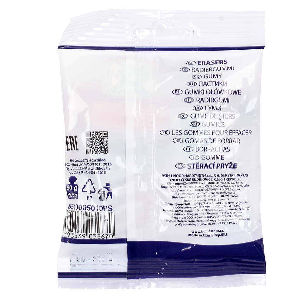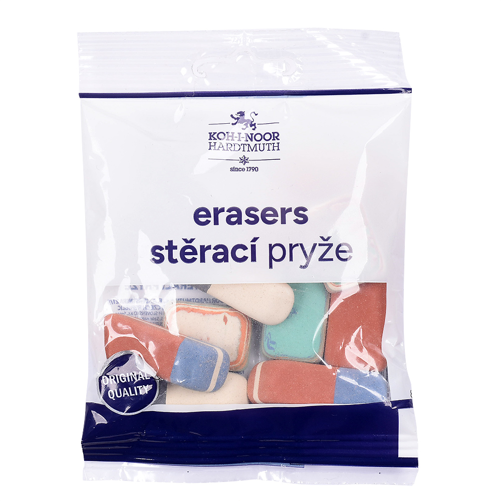 Kancelářská oblázková stěrací pryž vyrobená na přírodní bázi bez přídavků plastů a ftalátů. Balení obsahuje různé druhy pryže vhodné ke stírání grafitových a pastelových čar, skvrn inkoustu a tuše. Pryž je vhodná také pro stírání písma psacích strojů a snímacích tuh.