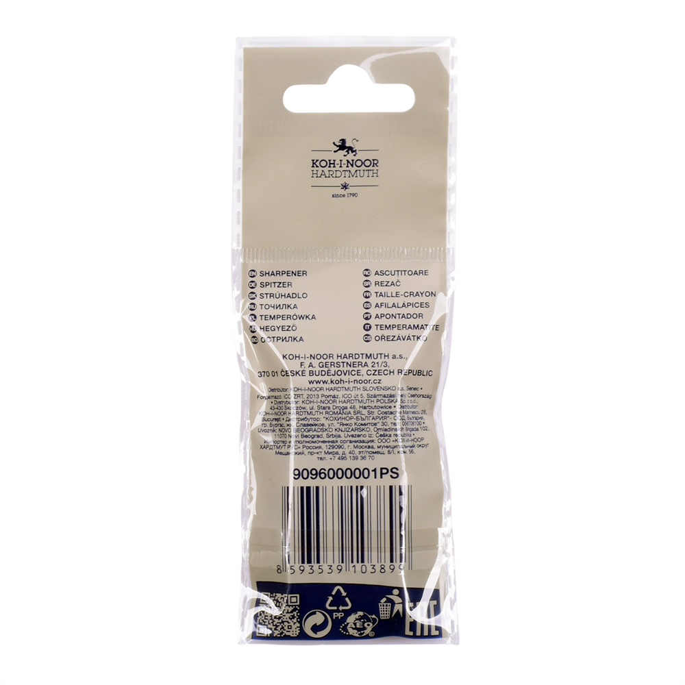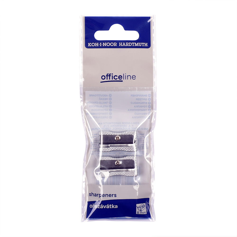 The product is used as sharpener for schools. Set of 2 metal sharpeners No. 9095000068KS in a PP bag with euro-hanger. Product dimensions 140 x 52 x 14 mm.