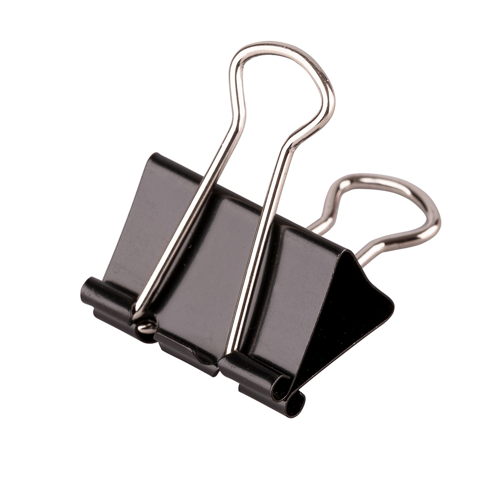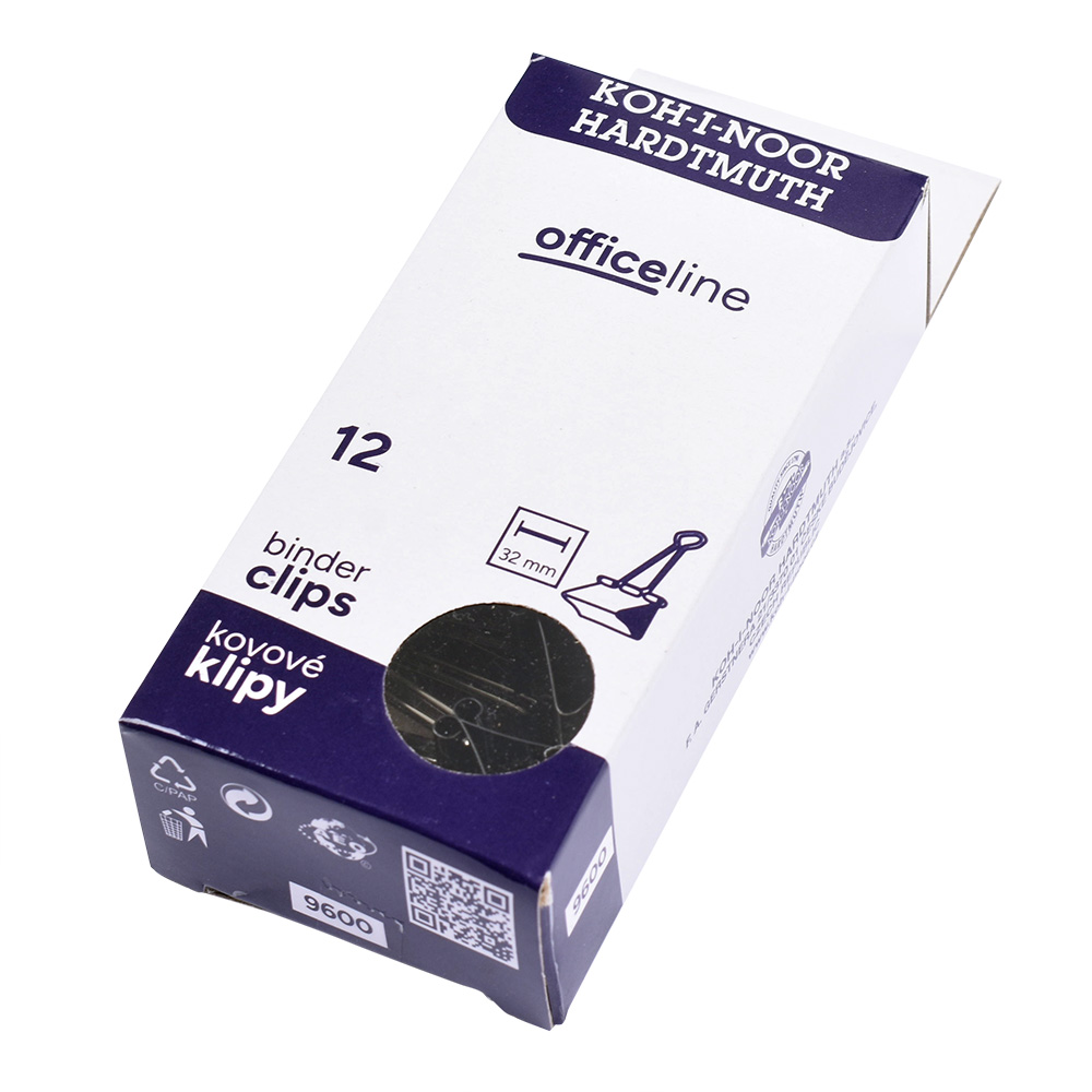 Metal clips 32 mm, height 55 mm, width at the widest point 32 mm. Pressing mechanics is black, pressing holders are nickel-coated. 12 clips in a paper box. The clips are used e.g. to clipping of multiple papers.