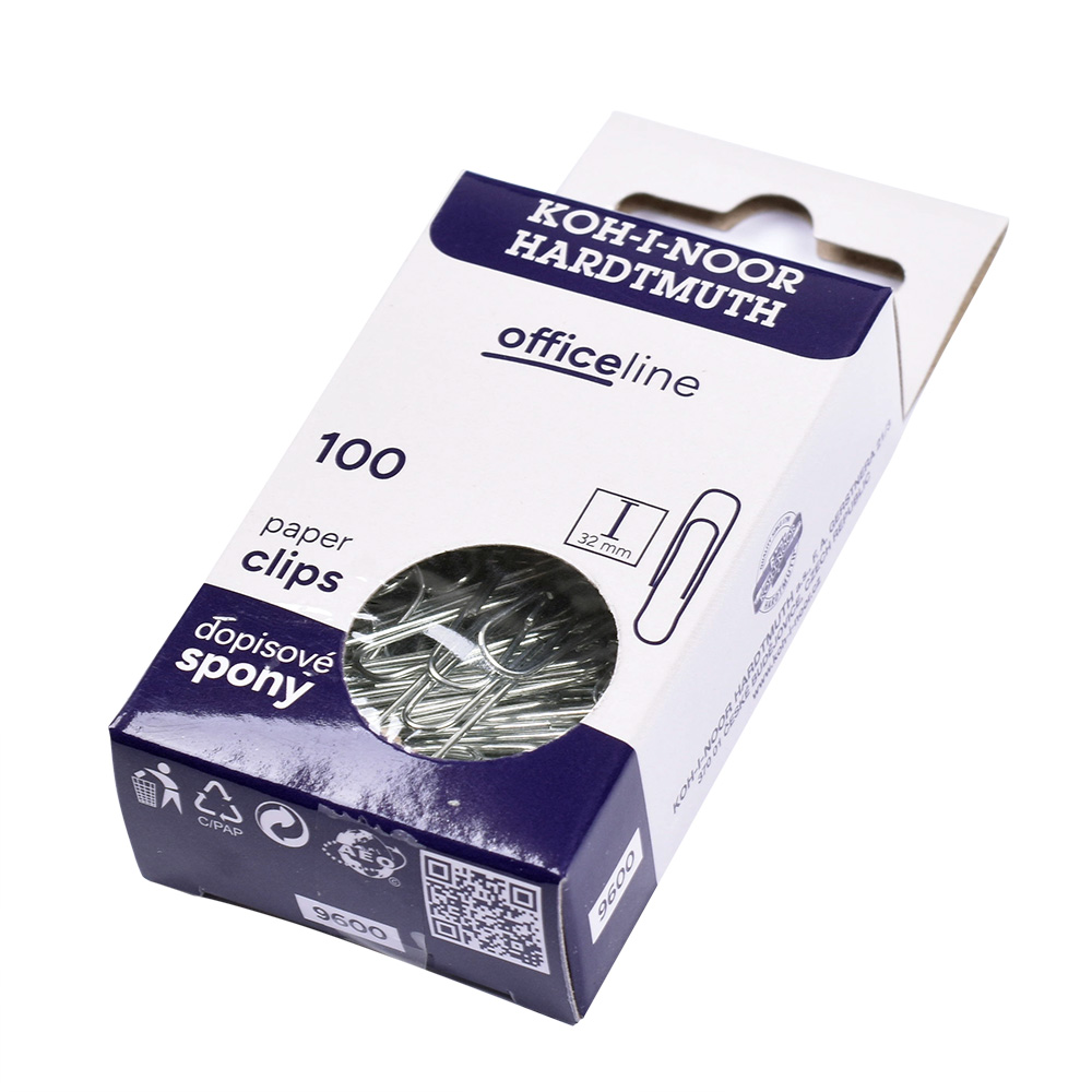 Paper clips 32 mm, wire diameter 1,60 mm, length 32 mm, width 6 mm. Zinc-coated wire. 150 clips stored in the cardboard box. The clips are used e.g. to clipping of multiple papers.