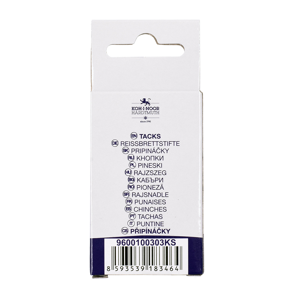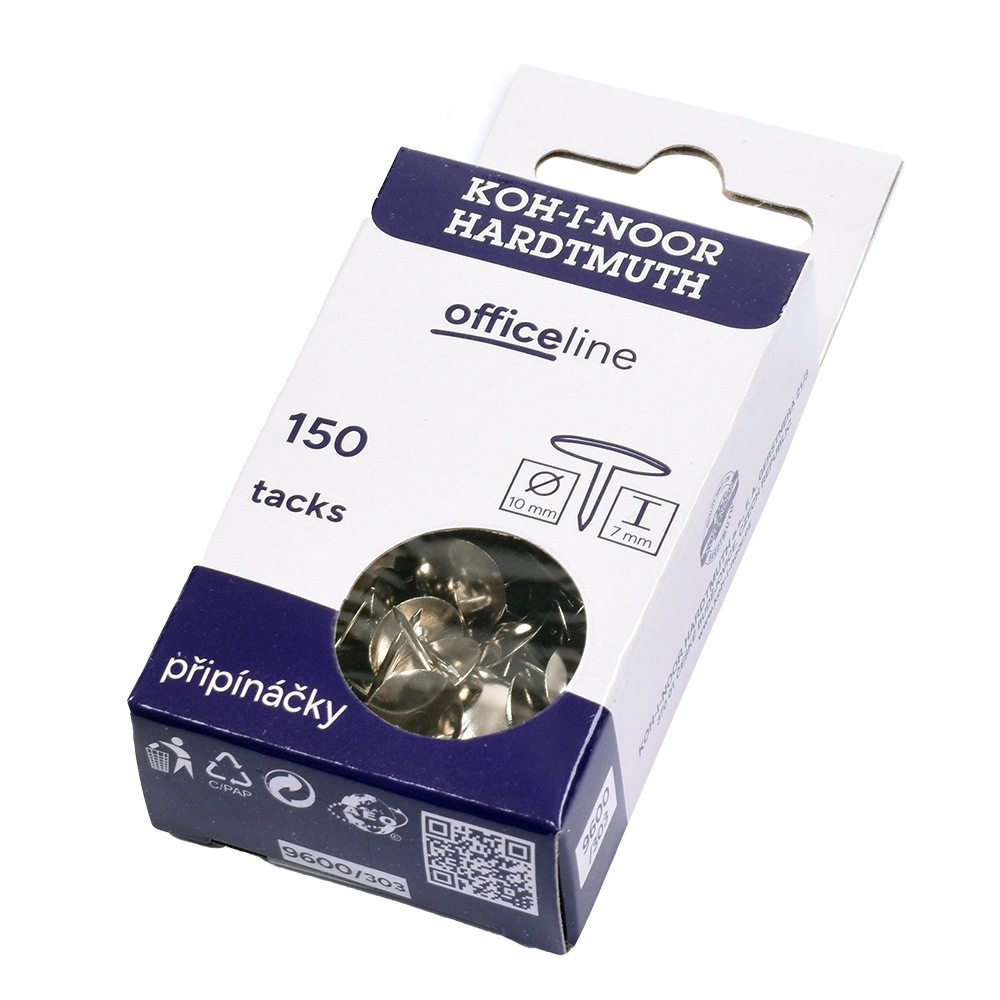 Drawing pins, wire diameter 10 mm, head diameter 10 mm, height 10 mm, metal. 150 drawing pins stored in the cardboard box. The drawing pins are used to attach e.g. papers to a cork board.