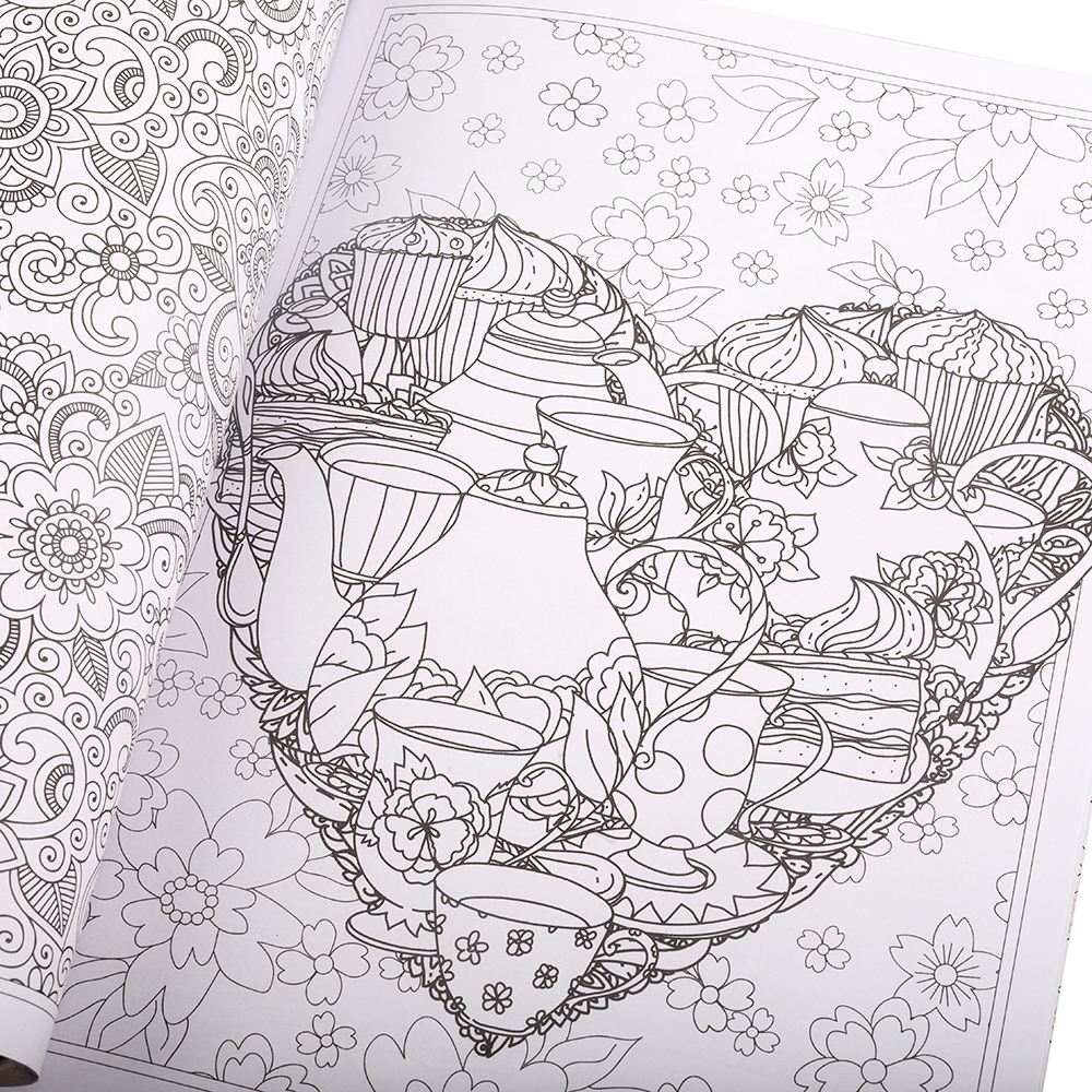 Colouring book for adults – bind in the glued binding on the side. With paper boards on front and rear side. Dimensions of the notepad 210 x 285 x 5 mm. In total the notepad contains 64 pages of duplex printed colouring sheets. FSC.