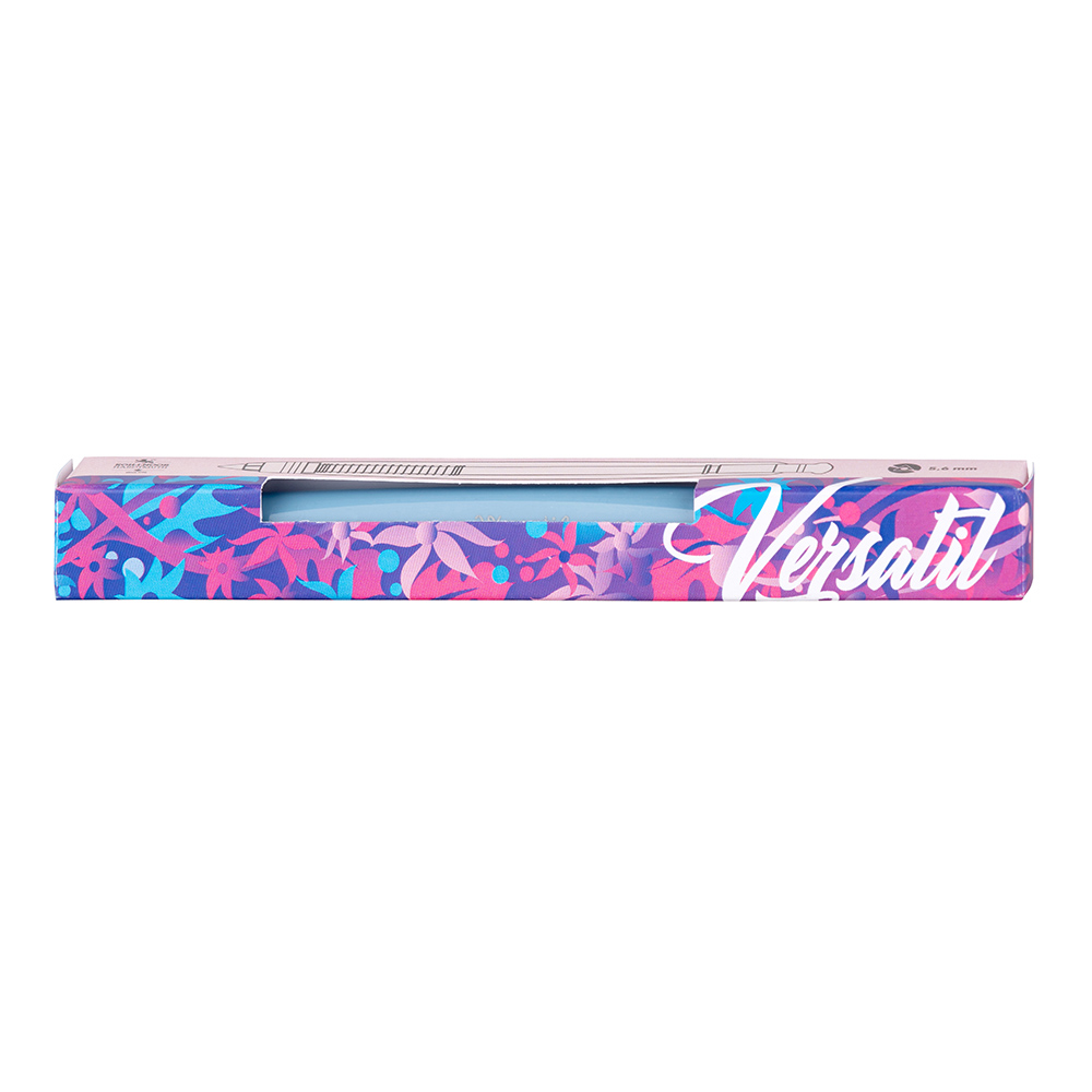 Mechanical dropping pencil with graphite lead 4B with 5,6 mm diameter in combination of metal mechanics - three-side blue plastic profiled coat and visible nickled metal parts. It is designed for everyday writing and drawing. The lead is drawn out by pressing the button while holding the pencil with the tip sloping down. The tongs in the tip open and lead moves out. Inside the button there is a sharpener and after you take the button out you can sharpen the lead. The pencil type number and KOH-I-NOOR Versatil 5348 is printed on the pencil coat in dark silver print. Individual pencils are packed in small paper boxes and specified as EAN1. Sets of pencils are packed by 10 pcs in small carton boxes specified as EAN2.