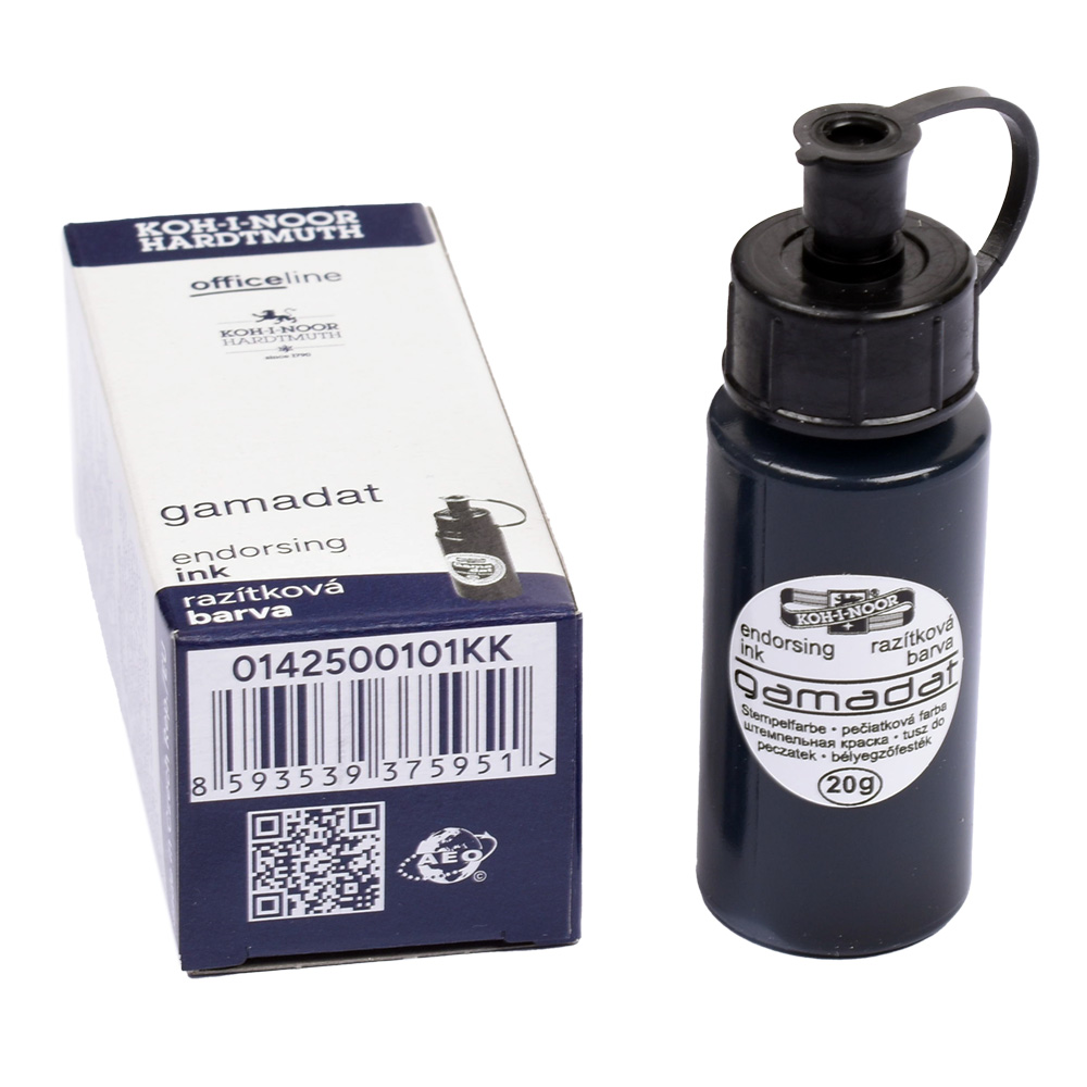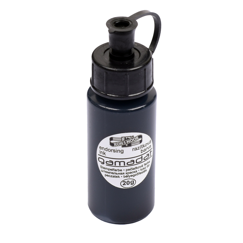 Razítková barva na olejovém základě je vhodná pro razítka, která jsou zhotovena z fotopolymerní folie, otisk se snímá z plněné podušky přímo v razítku nebo z plstěné podušky na papír. Balení 20 g v PE lahvičce s aplikátorem.