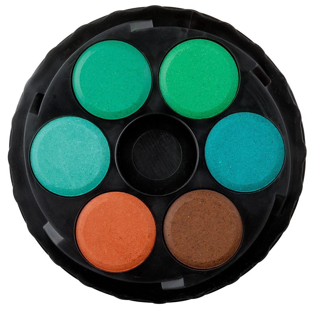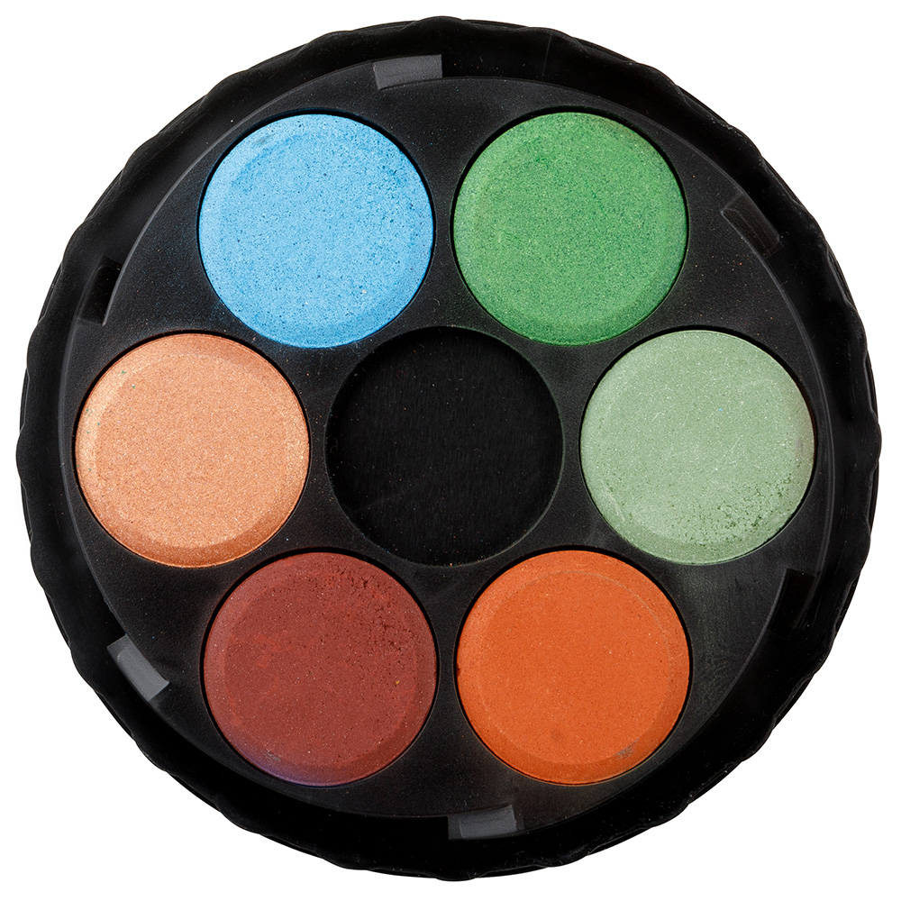 Školní vodové barvy 48 odstínů s tabletami o průměru 22,5 mm v kulatých, platových, osmipatrových barevnících. Barvy jsou výrazné, vyznačují se svým vysokým obsahem pigmentů. Jsou certifikované a zcela bezpečné pro děti.