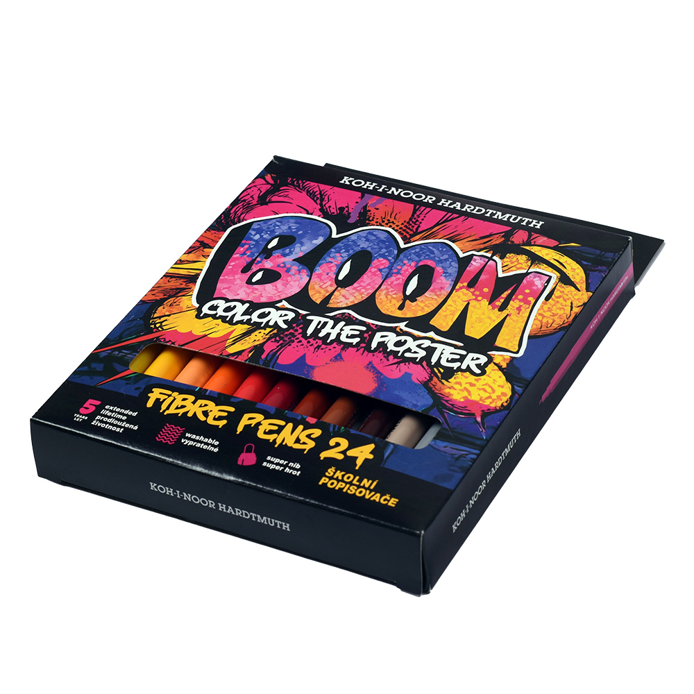 Popisovače s ergonomickým úchopem. Jsou plněné pestrými vypratelnými inkousty ve 24 odstínech a vyrobeny z materiálů zajišťující odolnost proti vyschnutí minimálně 5 let. Hroty odolné proti zatlačení umožňují psát a malovat stopou šířky 1 – 2 mm a délkou 300 m. Popisovač je lehký a umožňuje psát a malovat bez únavy rukou. Všechny použité materiály splňují požadavky normy EN – 71. Baleny jsou do souprav 6, 10, 12, 18, 24, 30 ks v PP pouzdrech.