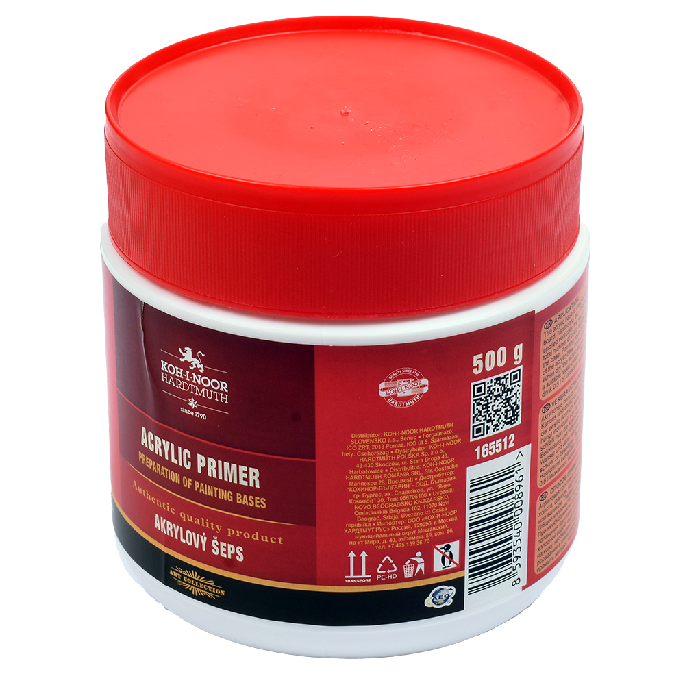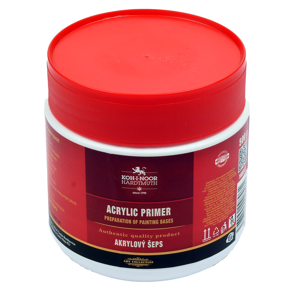 Bílý podkladový nátěr pro malbu akrylovými barvami. Obsahuje akrylátovou disperzi, která po zaschnutí vytvoří voděodolný film.