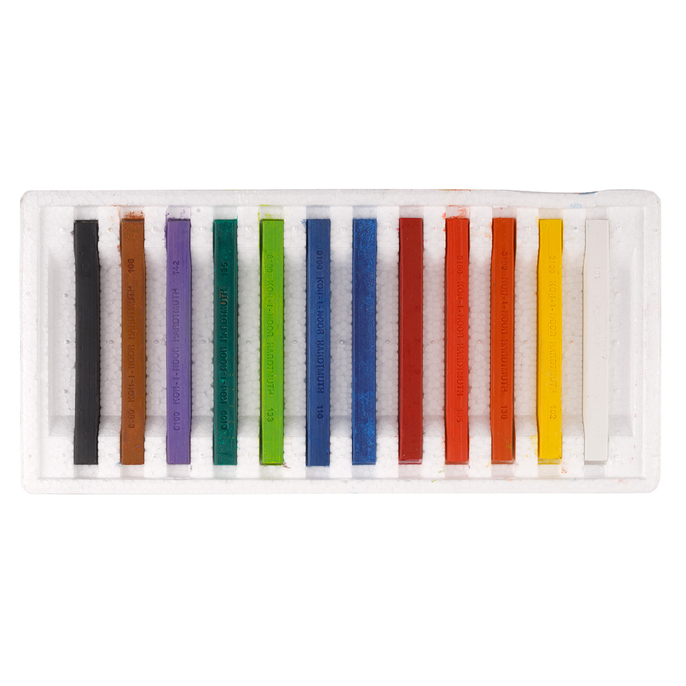 12 ks souprava uměleckých tvrdých hranatých olejových kříd o rozměru 7 x 7 x 75 mm zabalené v kartonové krabičce. Křídy jsou určeny umělecké a hobby kreslení. Silně pigmentované s vysokou světlostálostí a hladkou stopou. Možnost kresby širších čar a kresby plochou křídy.