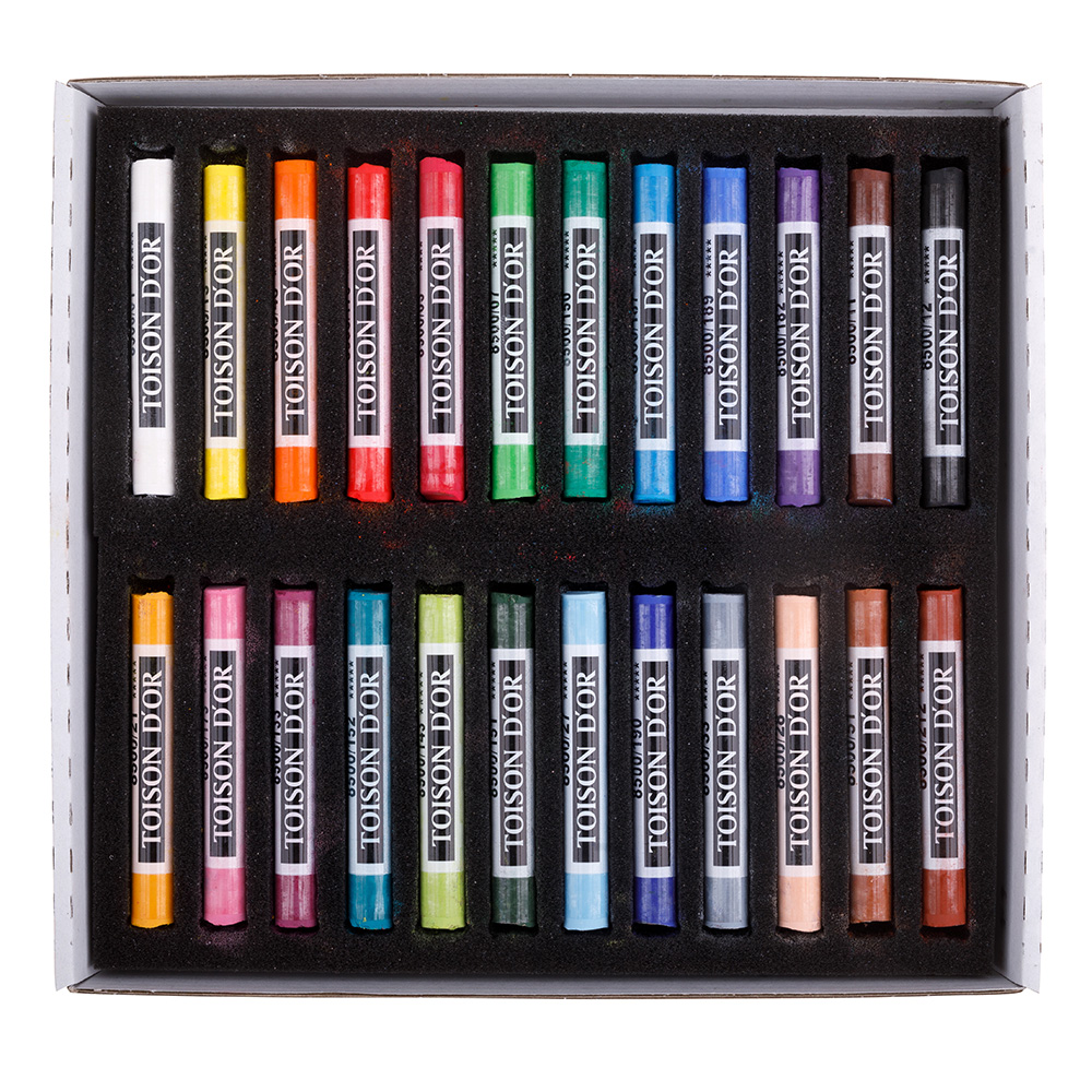 Souprava 24 ks kulatých uměleckých pastelů s ovinem o průměru 10 mm a délce 75 mm. Mají vynikající psací vlastnosti i světlostálost. Při kreslení je možné použít držák pastelů KOH-I-NOOR Versatil. Kresbu doporučujeme po dokončení stabilizovat fixativem.