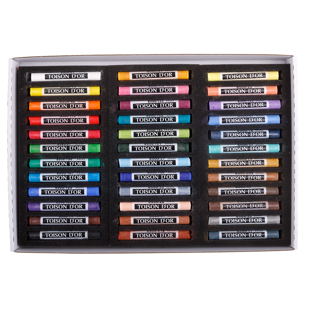Souprava 36 ks kulatých uměleckých pastelů s ovinem o průměru 10 mm a délce 75 mm. Mají vynikající psací vlastnosti i světlostálost. Při kreslení je možné použít držák pastelů KOH-I-NOOR Versatil. Kresbu doporučujeme po dokončení stabilizovat fixativem.