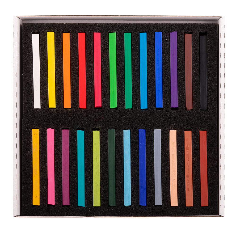 Souprava 24 ks prašných uměleckých pastelů s pevnější strukturou, čtvercového profilu 7 x 7 mm a délky 75 mm. Jsou používány pro tenčí a obrysové linie. Jako plnivo se používá mletá pemza.