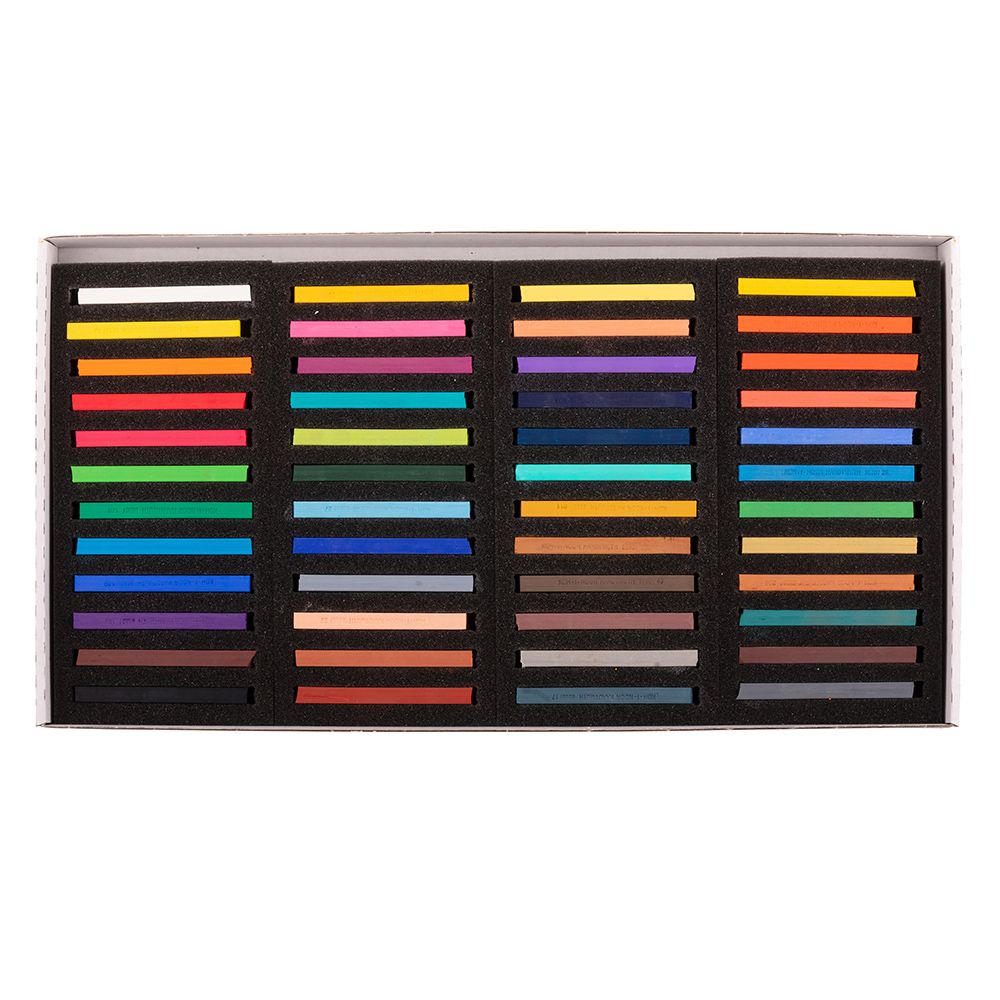 Souprava 48 ks prašných uměleckých pastelů s pevnější strukturou, čtvercového profilu 7 x 7 mm a délky 75 mm. Jsou používány pro tenčí a obrysové linie. Jako plnivo se používá mletá pemza.