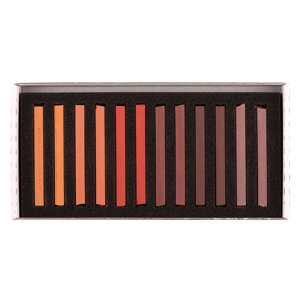 Speciální 12 ks souprava hnědých odstínů uměleckých pastelů s pevnější strukturou, čtvercového profilu 7 x 7 mm a délky 75 mm. Jsou vhodné pro tenčí a obrysové linie a pro kresbu přírodních scenérií.