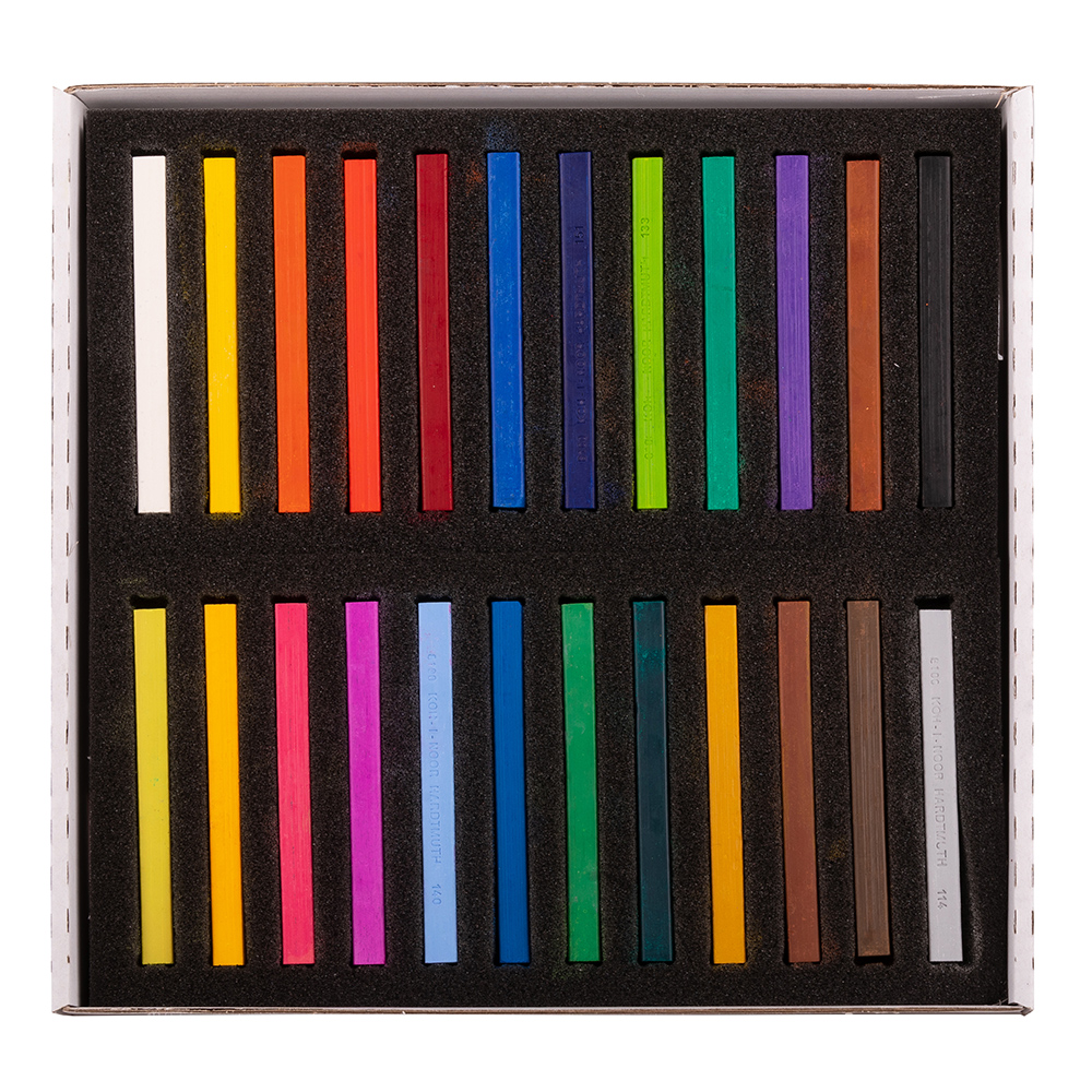 24 ks souprava uměleckých tvrdých hranatých pastelů o rozměru 7 x 7 x 75 mm zabalené v kartonové krabičce. Pastely jsou určeny pro umělecké a hobby kreslení. Silně pigmentované s vysokou světlostálostí a hladkou stopou.