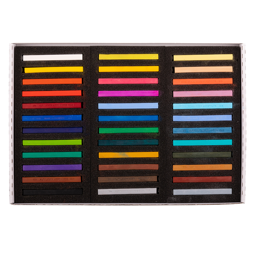 36 ks souprava uměleckých tvrdých hranatých pastelů o rozměru 7 x 7 x 75 mm zabalené v kartonové krabičce. Pastely jsou určeny pro umělecké a hobby kreslení. Silně pigmentované s vysokou světlostálostí a hladkou stopou.