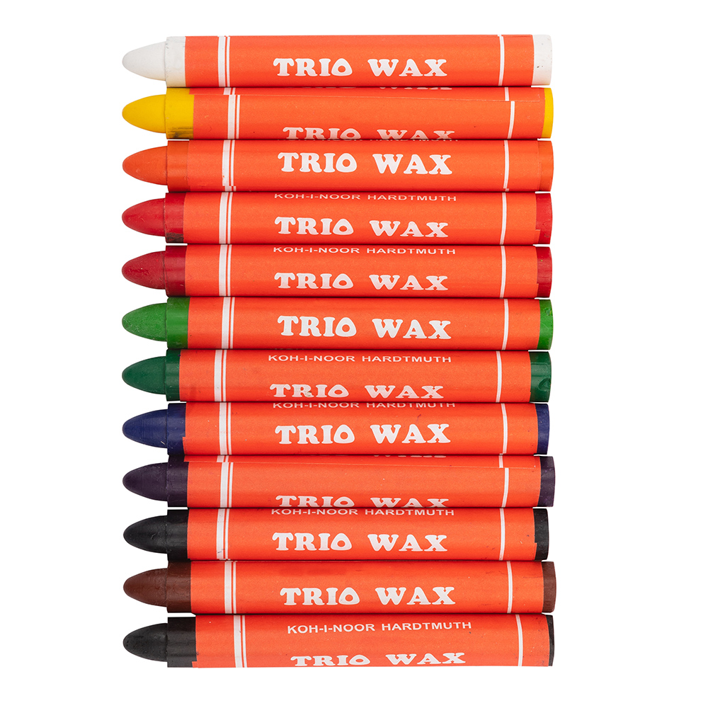 Výrobek se používá jako souprava trojhranných nerozmyvatelných voskovek určených pro školní, aranžérské a umělecké kreslení – 12 ks souprava. Trojhranné voskovky se zašpičatělým koncem, obalené červeným zavinovacím štítkem. Rozměr 1 ks - TR 10 mm, délka 90 mm. Voskovky jsou vložené hroty k eurozávěsu, do kartonové potištěné krabičky s motivem včel.