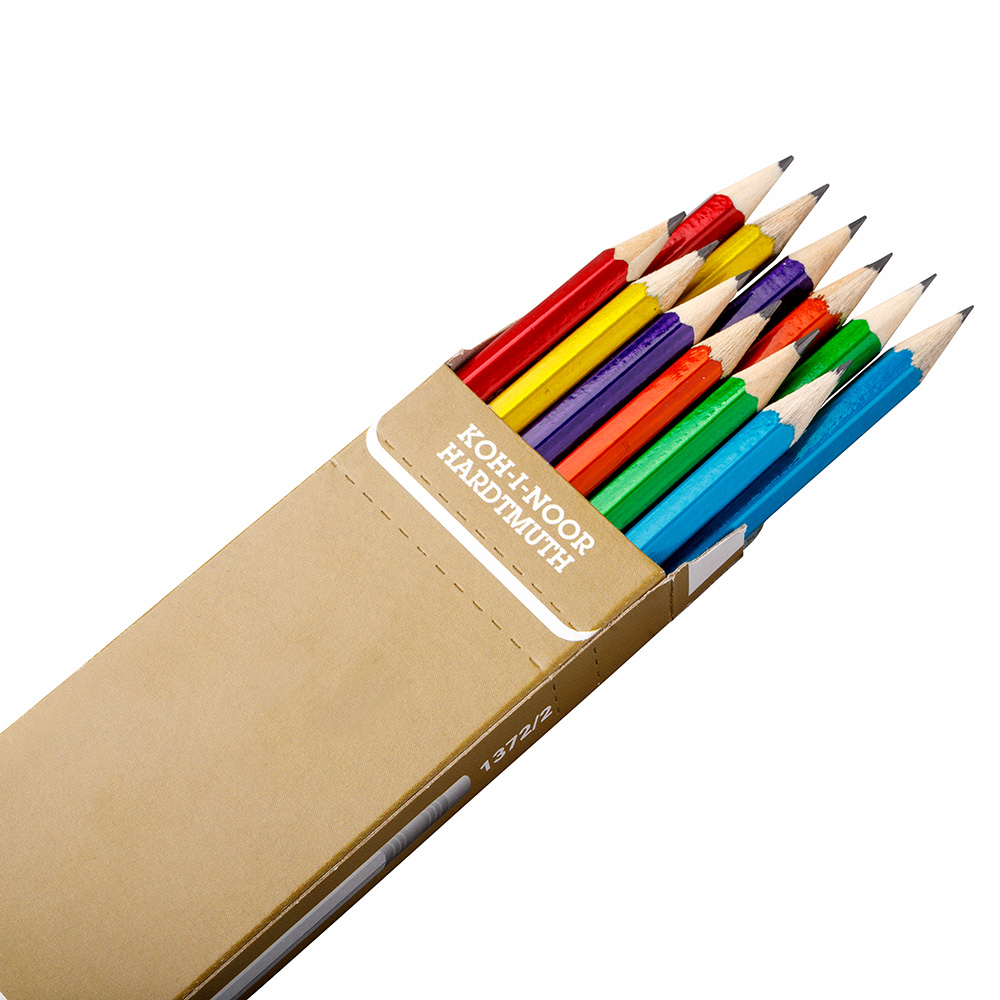 Šestihranné tužky v dřevěném plášti s grafitovým jádrem v gradaci 2/HB. Tužky jsou v šesti odstínech s metalickým povrchem a mají 6 odstínů gumotypů, balené po 12 ks (mix) do krabičky. Hodí se pro univerzální použití.