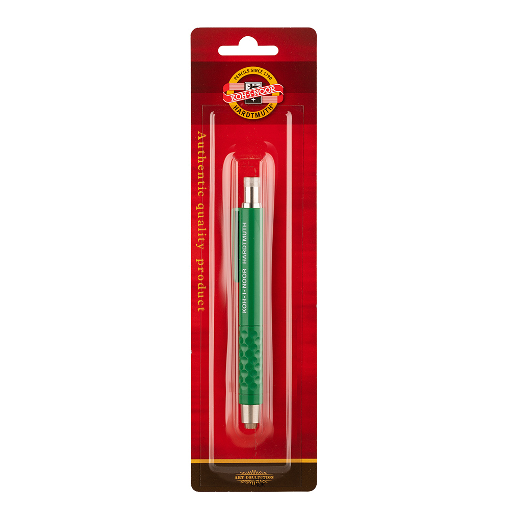 Mechanická padací tužka v kombinaci kov-plast s tuhou průměr 5,6 mm pro běžné psaní i kreslení. Tuha se posunuje stisknutím knoflíku v nakloněné poloze tužky, tím dojde k otevření kleštiny a vysunutí tuhy. V knoflíku je umístěno hrotítko, po odšroubování knoflíku lze hrotit tuhu. Plášť tužky je plastový, kulatý s klipem. mechanika kovová. Tužka je po 1 kuse balena do blistru, assort 6 barev - žlutá, červená, černá, zelená, modrá a bílá. V kartonu 24 ks spotřebitelského balení v blistru.