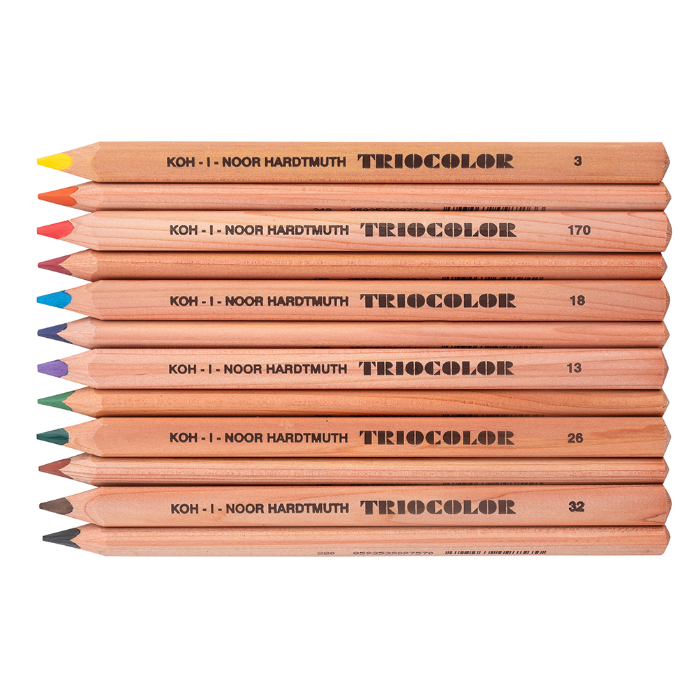 Trojhranné pastelové tužky TR-10,4 mm v dřevěném plášti, v přírodním provedení. Ergonomický trojhranný tvar umožňuje optimální držení a vedení tužky. Balené po 12 barvách do kartonové krabičky. Jsou vhodné pro kreslení, zvláště pro dyslektiky a dysgrafiky. Příjemně se drží.