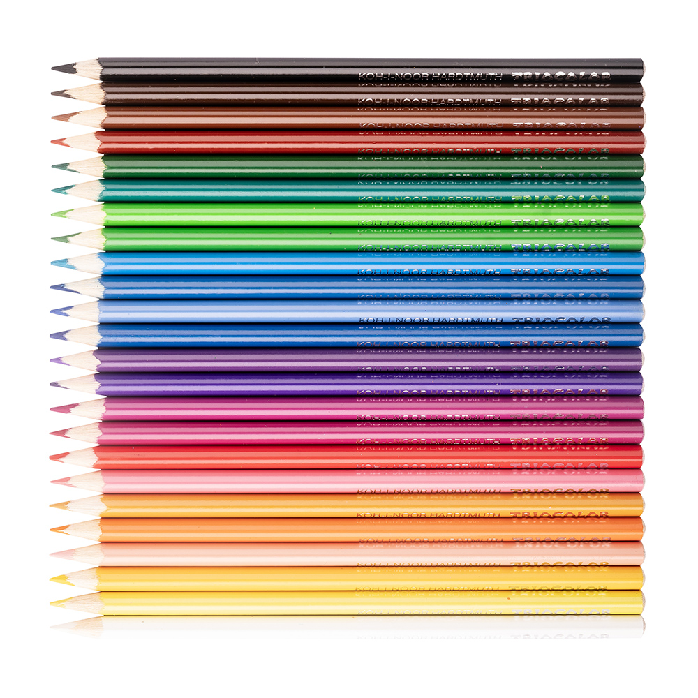 Trojhranné barevné tužky v dřevěném plášti. 24 barev baleno do kartonové krabičky. Ergonomický trojhranný tvar umožňuje optimální držení a vedení tužky. Jsou určeny pro kreativní a profesionální použití.
