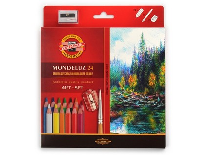 Souprava uměleckých akvarelových pastelek. Pastelky jsou osazeny vysoce kvalitní tuhou o půměru 3,8 mm s vynikajícími psacími vlastnostmi a brilantními odstíny. Souprava je dále doplněna štětci a kvalitním ořezávátkem. Pastelky jsou vhodné pro umělce, pro hobby použití i pro běžné kreslení.