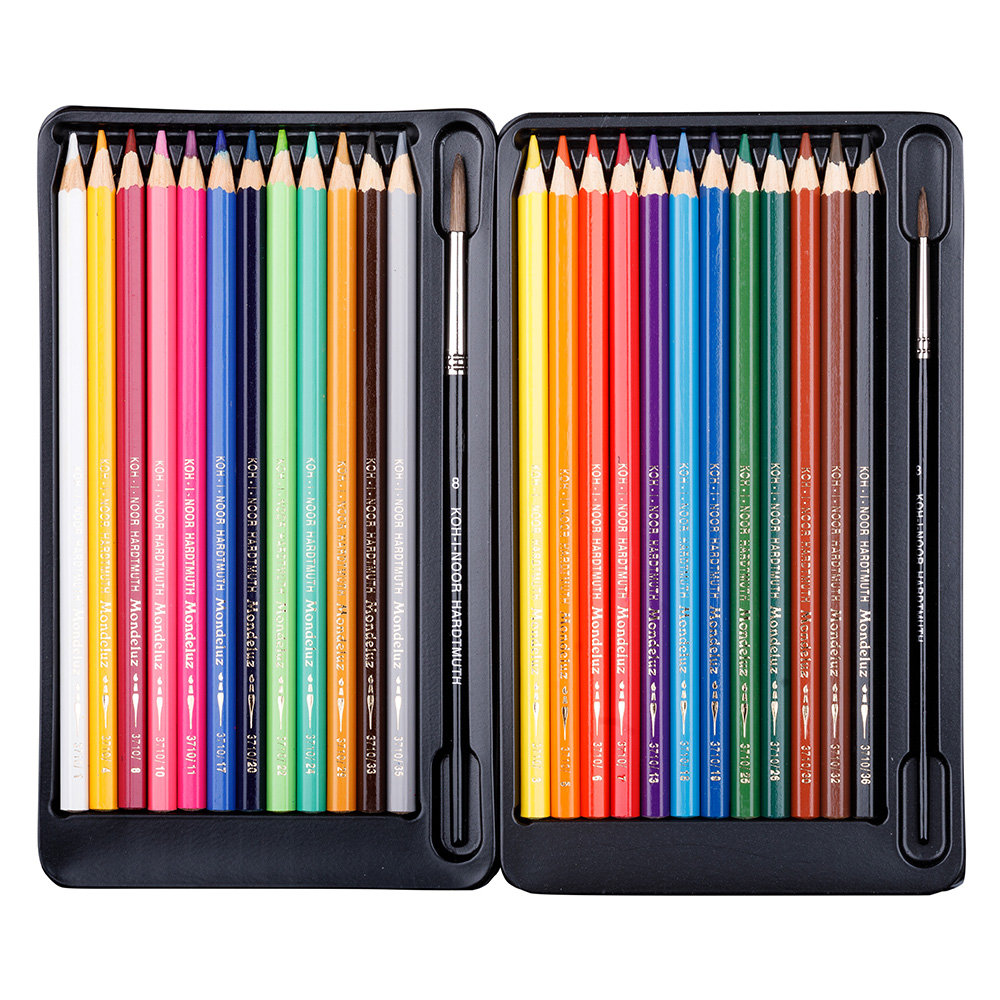 Souprava uměleckých akvarelových pastelek. Pastelky jsou osazeny vysoce kvalitní tuhou o půměru 3,8 mm s vynikajícími psacími vlastnostmi a brilantními odstíny. Souprava je dále doplněna štětci a kvalitním ořezávátkem. Pastelky jsou vhodné pro umělce, pro hobby použití i pro běžné kreslení.