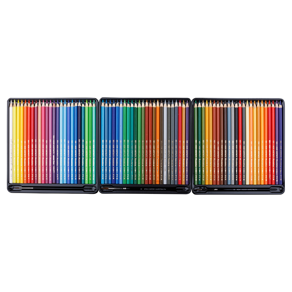Souprava 72 ks uměleckých akvarelových pastelek. Pastelky jsou osazeny vysoce kvalitní tuhou o půměru 3,8 mm s vynikajícími psacími vlastnostmi a brilantními odstíny. Souprava je dále doplněna štětci a kvalitními ořezávátky. Pastelky jsou vhodné pro umělce, pro hobby použití i pro běžné kreslení.