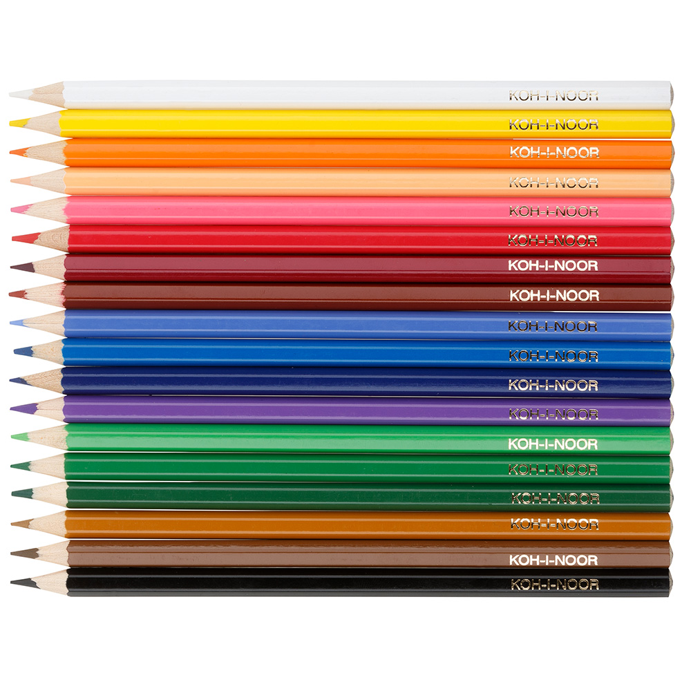 Souprava šestihranných pastelových tužek. Pastelky jsou v dřevěném plášti a balené po 18 odstínech do kartonové krabičky. Zanechávají sytou stopu a jsou vhodné pro školáky i univerzální použití.