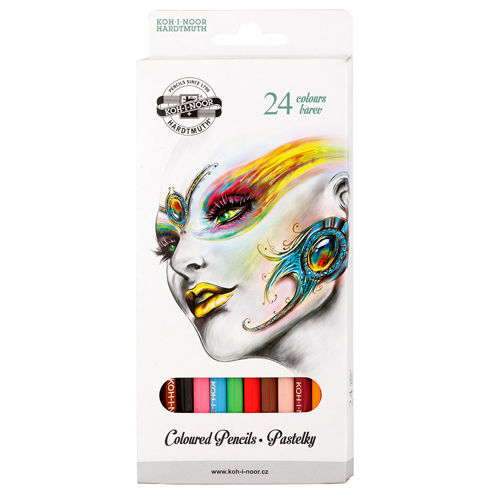 Souprava šestihranných pastelových tužek. Pastelky jsou v dřevěném plášti a balené po 24 odstínech do kartonové krabičky. Zanechávají sytou stopu a jsou vhodné pro školáky i univerzální použití.