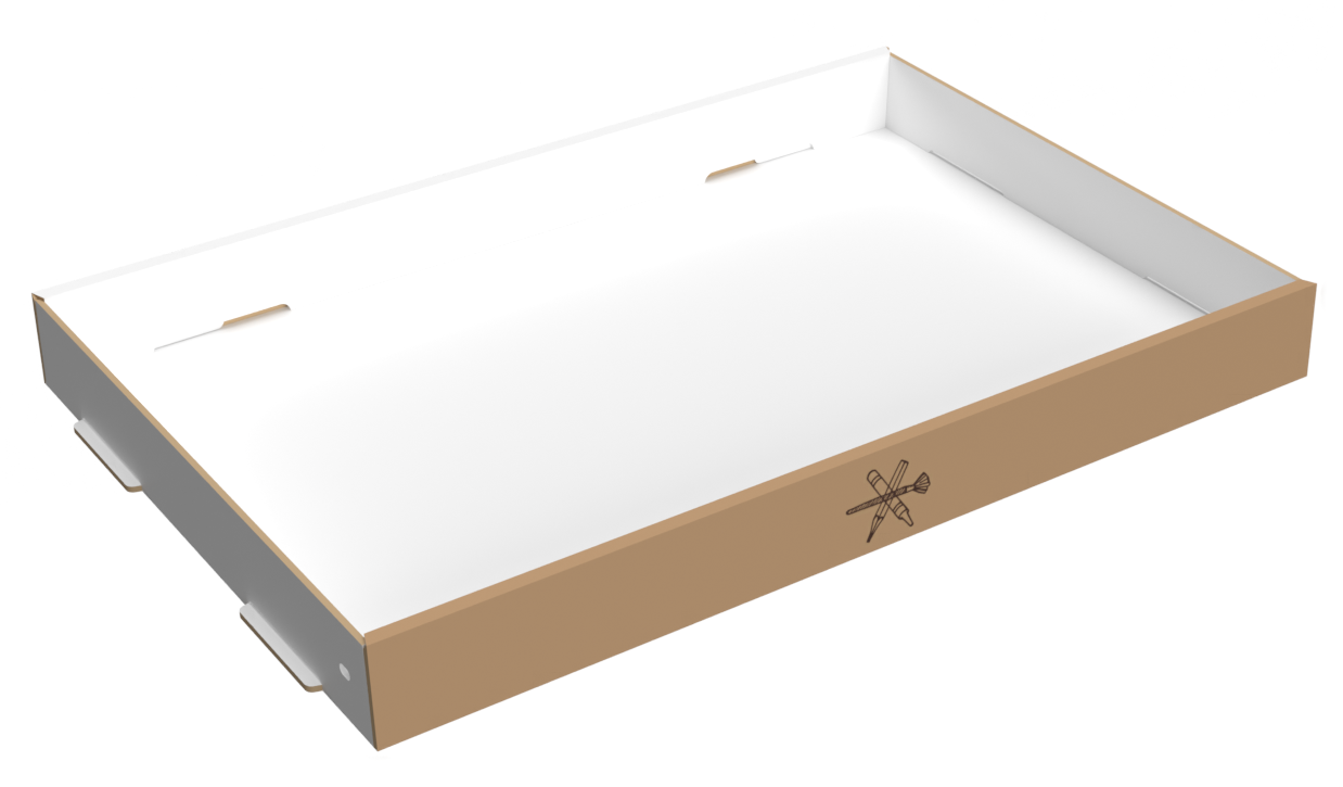Stojan je na psací a kreslící potřeby. Skládá se z 1 ks těla stojanu (boky a záda stojanu), 1 ks soklu stojanu, 2 ks polic, 4 ks šroubu pro upevnění polic, 2 ks cenovkové lišty na police (výška 40 mm), 1 ks U profilu na zpevnění akulitových zad a 5 ks pojistek na háky. Tělo stojanu je vyrobeno z materiálu EB vlna o tloušťce 12 mm, záda jsou z akulitu o tloušťce 3 mm. Stojan je potištěn designem KIN s podkladem v hnědé barvě. Stojan je bez horního čela. Stojan má ve složené formě rozměry 600 x 400 x 1500 mm. Uchycen je na CHEPS paletě.